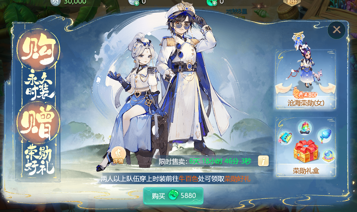 可直接购买“沧海荣勋”时装,