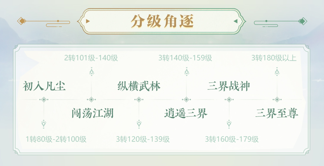 超级联赛将采取分级分组的形式,分为初入凡尘、闯荡江湖、纵横武林、逍遥三界、三界战神、三界至尊六大组别。人人都有机会在这里彰显超群武力,夺取最终荣耀!