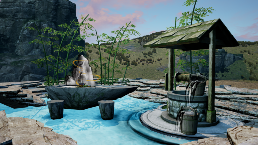 泠泠疏竹,竹隐水井,绿潭清溪.石