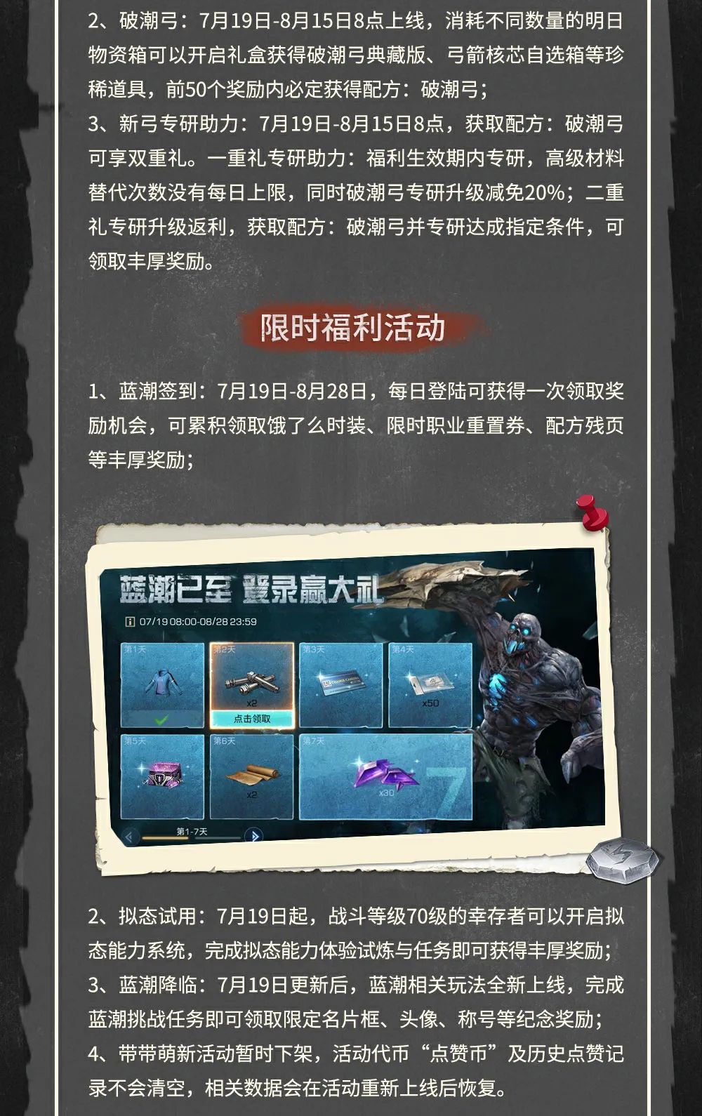 尖锐的提示音不绝于耳,蓝潮吞噬着万物,被蓝潮感染变异的新型异化怪物四散而生。任何轻微响动都会造成危机,使用弓箭是活下去的最佳选择!谨慎前行,是探索的关键,就地取材搭建临时工事,才能跨越被蓝潮肆虐侵袭的陆地。