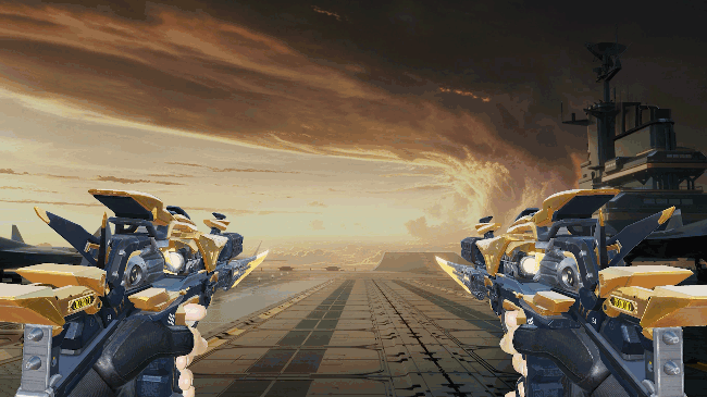 独特的金色与黑色相间涂装,尖锐的枪口和机翼般的装饰,不仅赋予了它强大的视觉冲击力,还彰显了强大的战斗力。枪口和枪身时不时出现的闪电,科幻感拉满了!