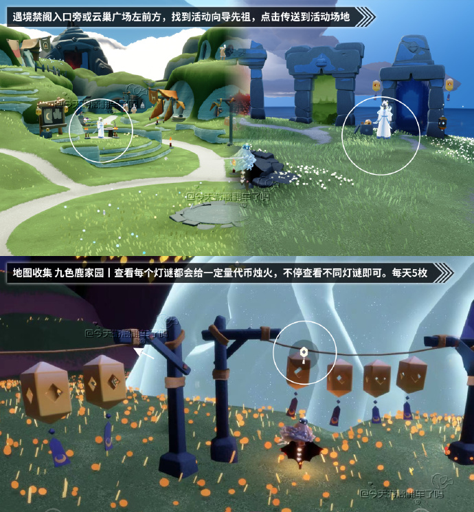 🔹在云巢活动公告板/遇境禁阁入口旁找先祖,可直接前往活动地图
