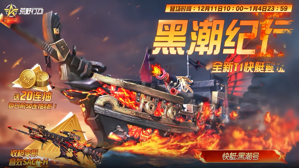深海怒涛翻涌,海盗传奇再启!全新军需【黑潮纪行】免费送20连抽福利(活跃任务+闪耀商店兑换),各位船长请收下这份补给!