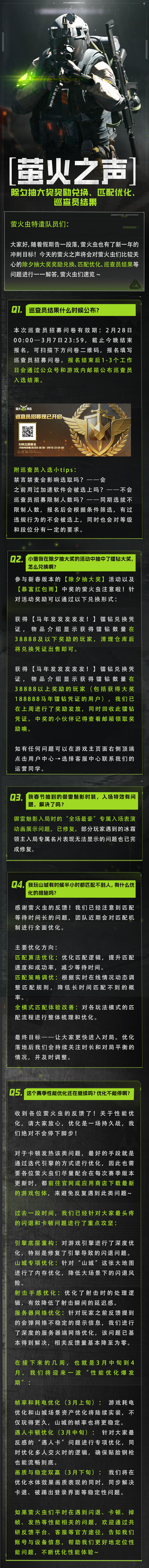 萤火之声|除夕抽大奖兑换、巡查员结果?近期热门问题回应!