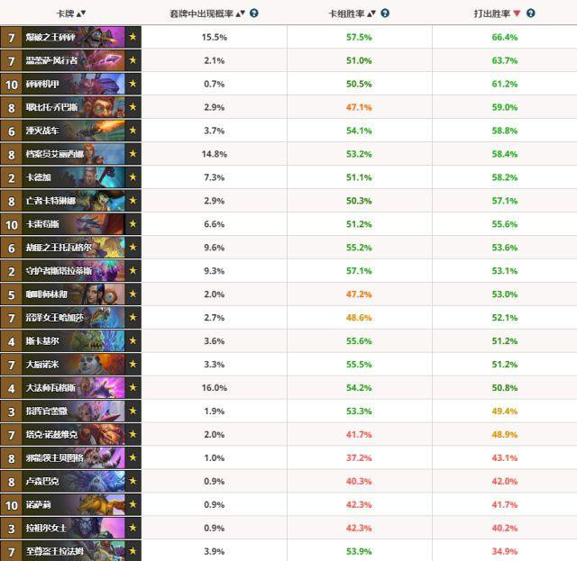看完了变好的卡牌,再来看看变差的卡牌。德鲁伊橙卡卢森巴克在在炉石传说新版本上线前很被看好,甚至版本上线后还是有不少主播在鼓吹。但是事实上,卢森巴克的使用率只有0.9%,卡组胜率40.3%,打出胜率42%。