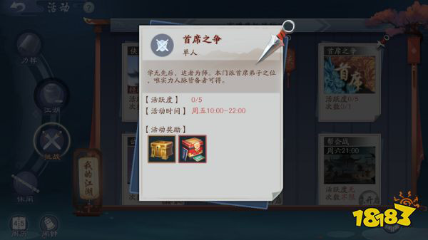 1、每个门派由于掌门事务繁重,需要在众多弟子当中选择一位首席和二弟子各一名,来帮助掌门管理其他弟子,特此设立竞选首席活动。