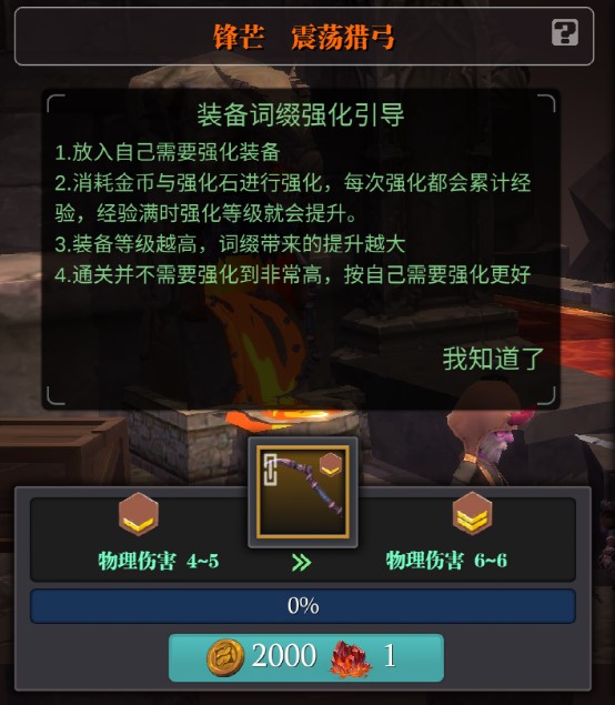 可以强化带词缀的装备,强化等级越高,属性值收益也越高。这个装备养成功能需要等到10级后解锁。具体来说,强化等级共分为45级,每一级都有固定的经验条,需要将对应经验条升满才能升至下一级。强化需要消耗对应金币和熔之石,获得的经验加成是一个波动区间。