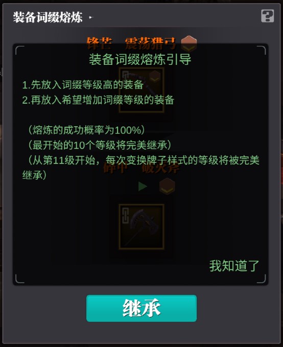 强化继承即继承其他装备的词缀强化等级。按照继承规则,词缀等级前10级为无伤继承,即1-10级为100%继承;后续每五级为一个阶段,10级以后的每个阶段的继承都会掉落至该阶段的初始等级,例如14级继承则掉落至11级。