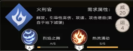 火刑官顾名思义,是以火属性为攻击特色的一个职业,同时在《地堡2》的原版设计中由物理职业“野蛮人”转职而来,因此也会兼顾到物理输出,他的两个技能详情如下: