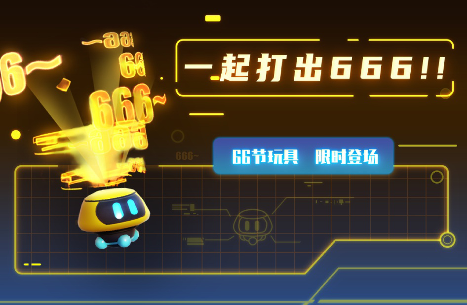 66节怎么可以没有666的玩具呢?活动期间,各位战斗家们可以花费6元购买66节特别玩具【666玩具】。666玩具是一个全息投影弹幕的玩具,会在空中不停的刷“666······”的弹幕~请为你的精彩操作喝彩吧~