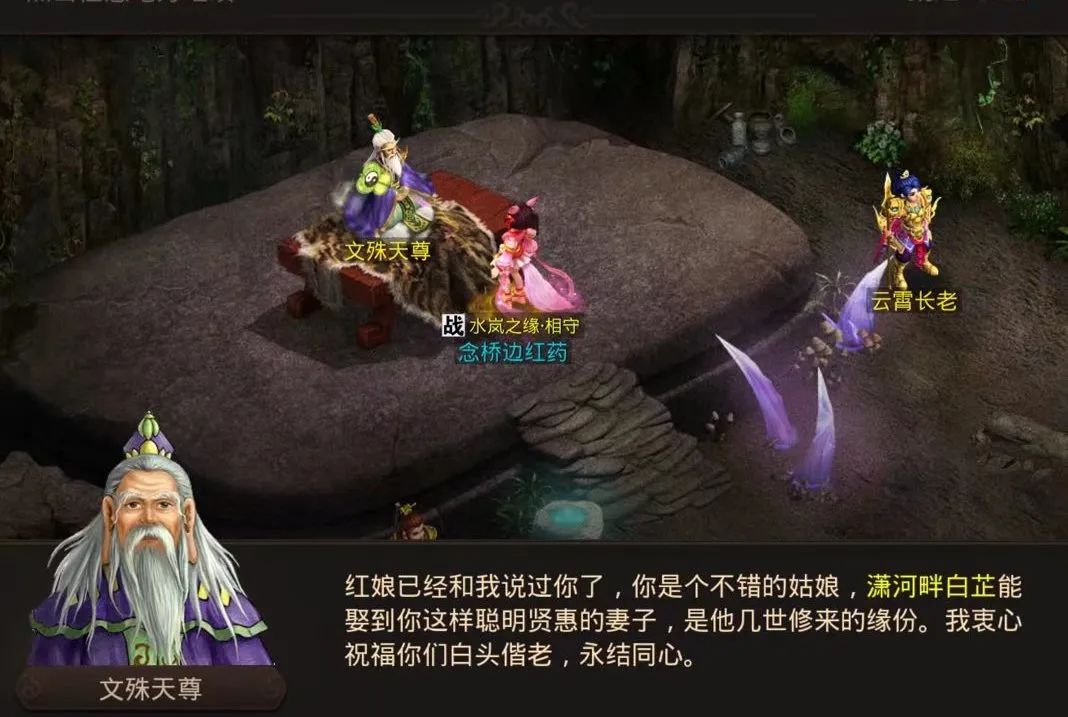 后来刚好520有活动,豪华婚礼8折,我们就顺理成章在一起了。查了很多道侣名,选择了念桥边红药和潇河畔白芷,之后就是每天幸福地一起做任务~