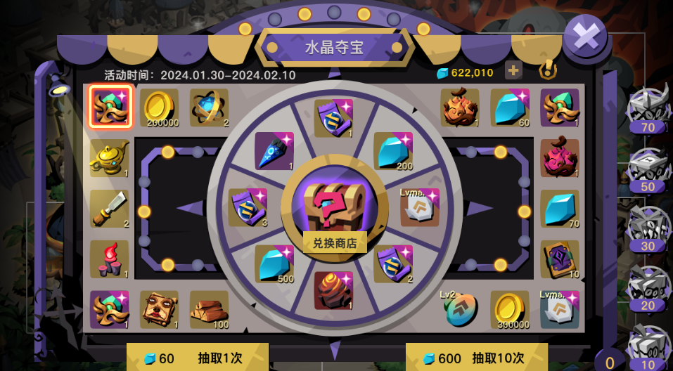 活动描述:欢聚洞窟,放肆贪婪,春节期间累计登录一定的天数,可以获得累计3500水晶+2.5亿金币,更有龙哥包包皮肤与宠物自选礼包(二选一)。