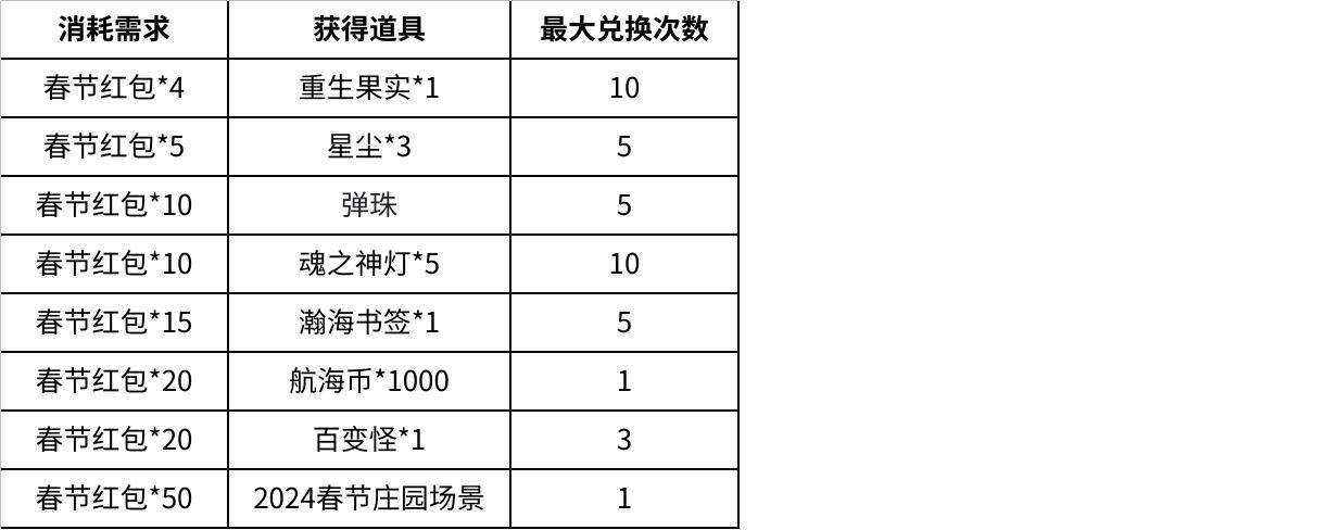 活动描述:使用收集到的春节红包可以在这里兑换相应的奖励~