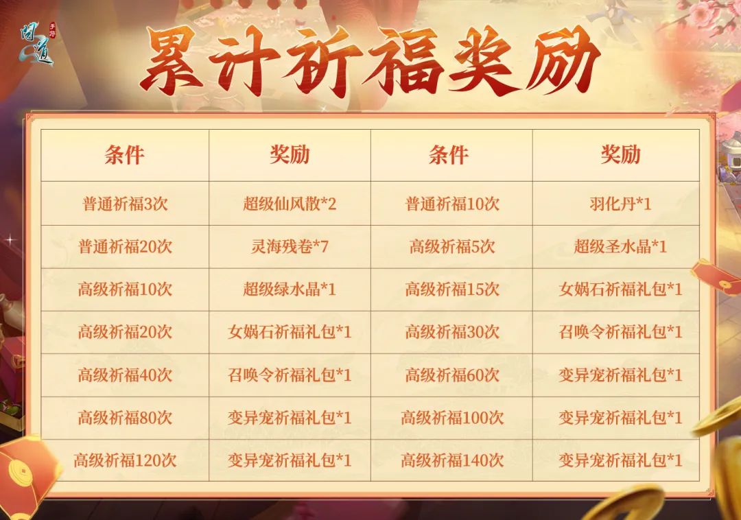 累计祈福相应次数还有对应奖励拿,女娲石、召唤令·十二生肖、十二生肖变异宠在向你招手啦~