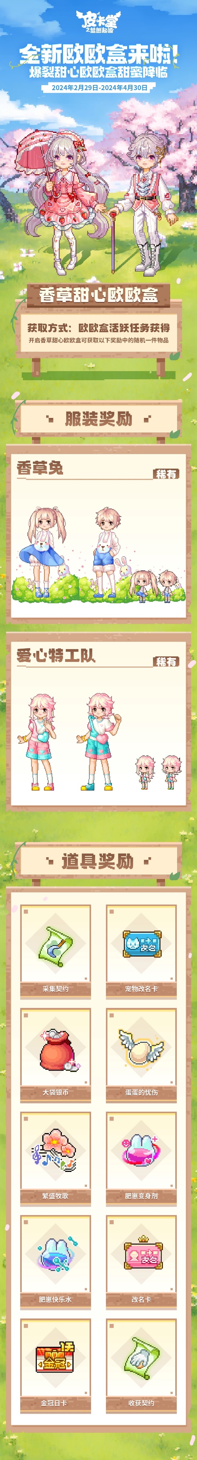 开启【香草甜心欧欧盒】有机会获得稀有服饰【香草兔】、【爱心特工队】