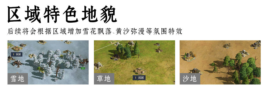 现在当你率军北上,迎接你的不再是单调色块,而是大漠孤烟直,北域雪纷飞。