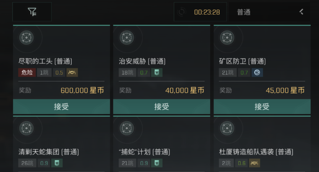 在做故事任务的过程中,E酱发现故事线任务是有时间限制的,如果在限定时间内没有完成任务,这个任务就会失效。飞行员们如果舰船科技等级不够或者没有足够时间完成任务,可以将任务获取的任务委托书在市场上出售,从而换取一笔可观的ISK哦!