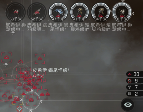 随后E酱使用了这本任务委托书,领取了相关的故事任务,跃迁到任务地点之后,整整30艘海盗舰船在等待着E酱!E酱很庆幸自己跃迁到目标点的时候没有选择0KM,不然E酱的狞獾训练舰要被海盗摧毁了。