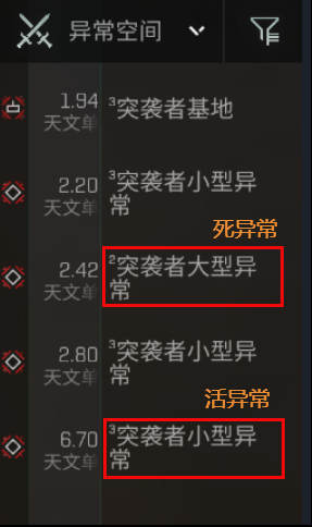 在加入军团后,军团的教官们教会E酱如何判断异常等级一样的活异常与死异常,活异常指的是与异常空间基地同等级的异常空间,死异常则指的是属于该星系且跟星系安全等级挂钩的异常。看到E酱兴趣高涨,军团教官们把E酱带领到了一片突袭者T3地区,这里是0.5级别的高安,我按照他们的方法判断了活异常与死异常,就投入到了刷怪作业中。