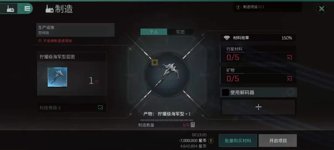 E酱也想过能不能通过工业自己制造一艘狞獾级海军型,但是发现自己的工业制造等级太低了,如果直接将挖来的矿物提炼的话,会损失掉不少的矿物资源。