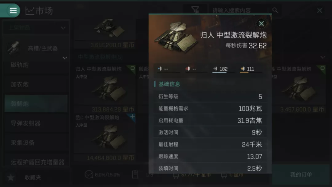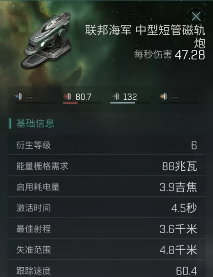 不过磁轨炮的缺点也很明显,就是射程很近。但是短管磁轨炮的射程也算还好,毕竟三种近炮相比之下差距并不是特别明显,真打起来更加都是贴脸输出,但因其最高的DPS,短管磁轨炮在实战中的表现可以说是非常亮眼的。