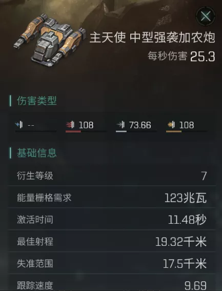 而强袭加农炮的激活时间是最长的,所以DPS是最低的,不过却有着几乎2倍于集束激光炮的最远总射程。当然,其最佳射程和失准范围大概对半开,所以在远距离输出时同样也比较看运气。