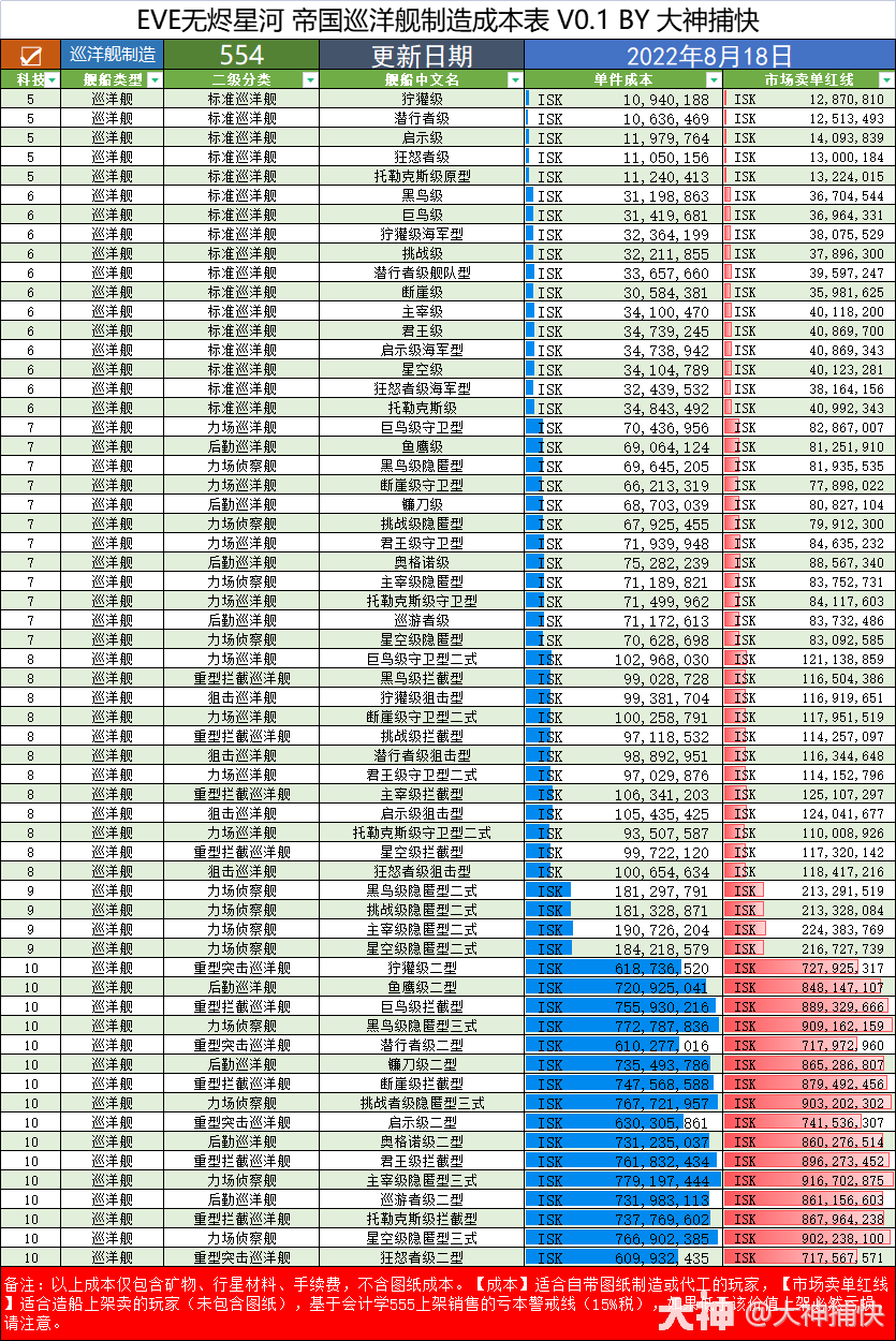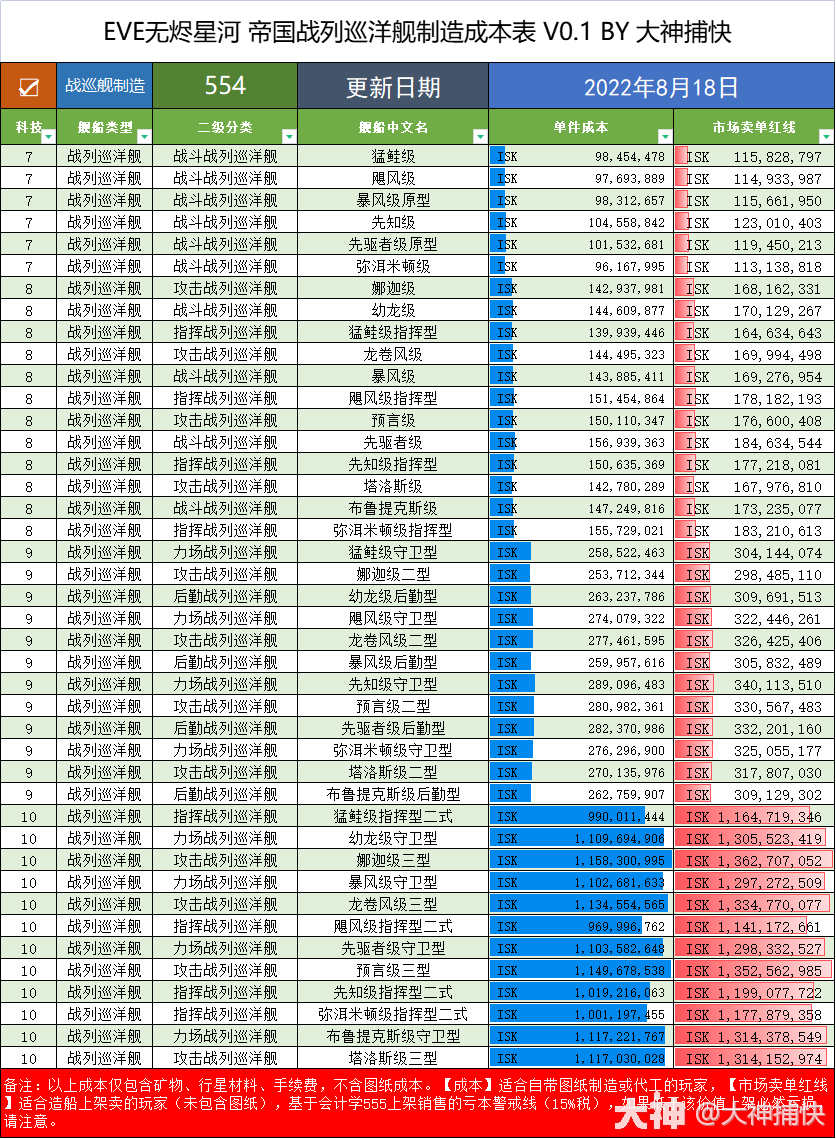 本帖将结合前面采集的市价,对旗舰、建筑、各类舰船成本进行了汇总,汇总结果仅供参考,希望对大家有所帮助,对于图纸不由系统直接售卖的舰船,成本中未考虑图纸成本,请大家在计算时留心。