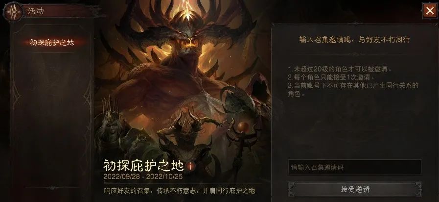 5.好友需在角色到达20级前输入邀请码形成同行关系,超过20级后将无法再被邀请。