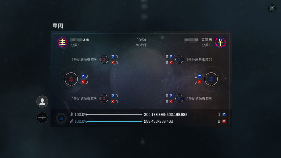 在战场中,双方各有一座基地空间站和两座护盾防御阵列,只有击毁对方的两座护盾防御阵列后才能攻击基地。