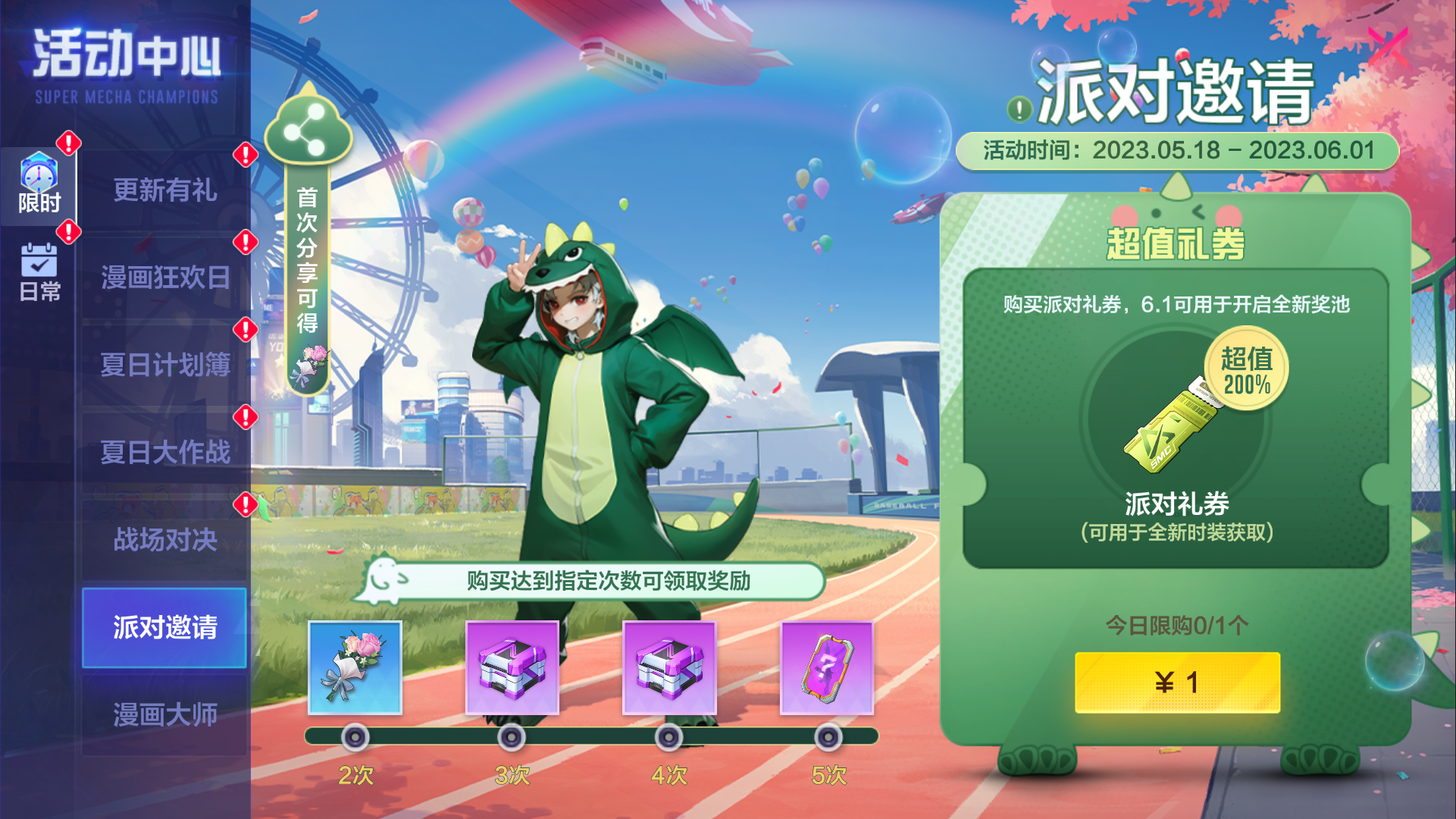 希里斯全新外观将于6.1上线,预热活动火热开启,提前购买派对礼券即享超值优惠,更有专属礼物等你来拿!