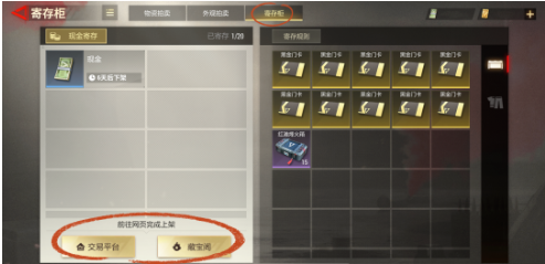 砖友可通过前往游戏中的【交易】板块进入【拍卖行】,点击【寄存柜】即可进入物品寄存页面。