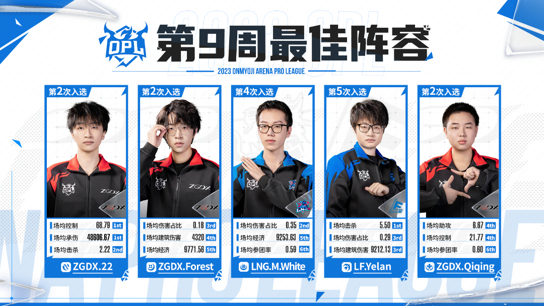 在OPL秋季赛第九周的比赛中,White选手以场均经济9253.63,场均伤害占比35%,场均参团率59%的成绩以及爆炸的输出和卓越的意识帮助团队拿下比赛,荣获周星荣誉!