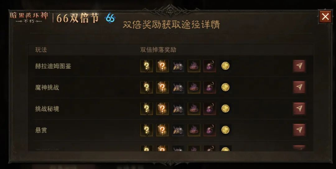 这次66双倍节,大家非常关心的传奇宝石双倍掉落将继续延续!活动期间,我们在挑战不朽秘境玩法时,拥有一次选择传奇宝石双倍掉落的机会。