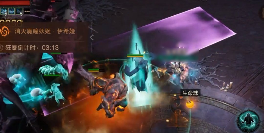 冒险者们要尽快击败魔眼眷属,才能解除boss的无敌状态。