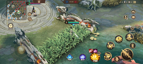 (7)二技能可用来探视野,前期路过草丛时可一直按二技能,探到有敌方式神的话能第一时间给自己提供护盾,且能用一技能迅速拉开距离或追击敌方;