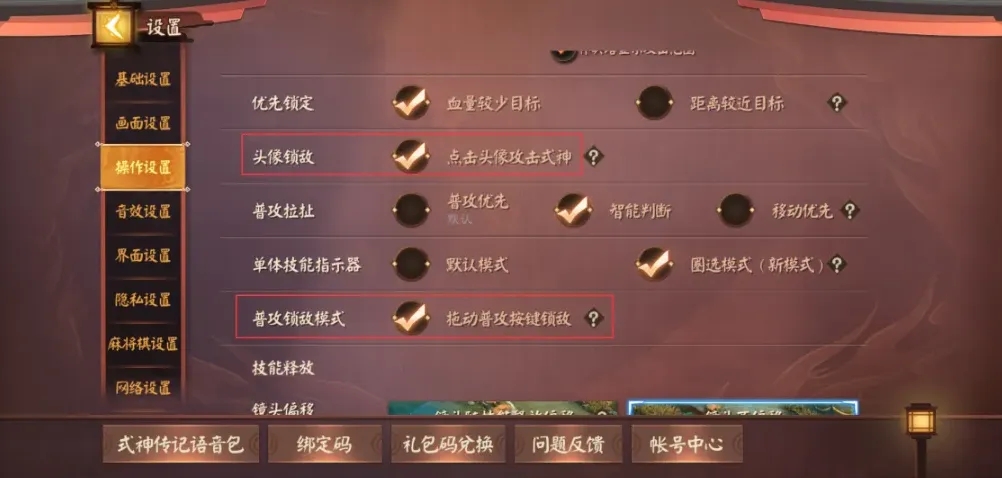 操作设置打开[拖动普攻键锁敌]往往能让须佐之男在对局中发挥得更好,也可使用[点击头像攻击式神]。