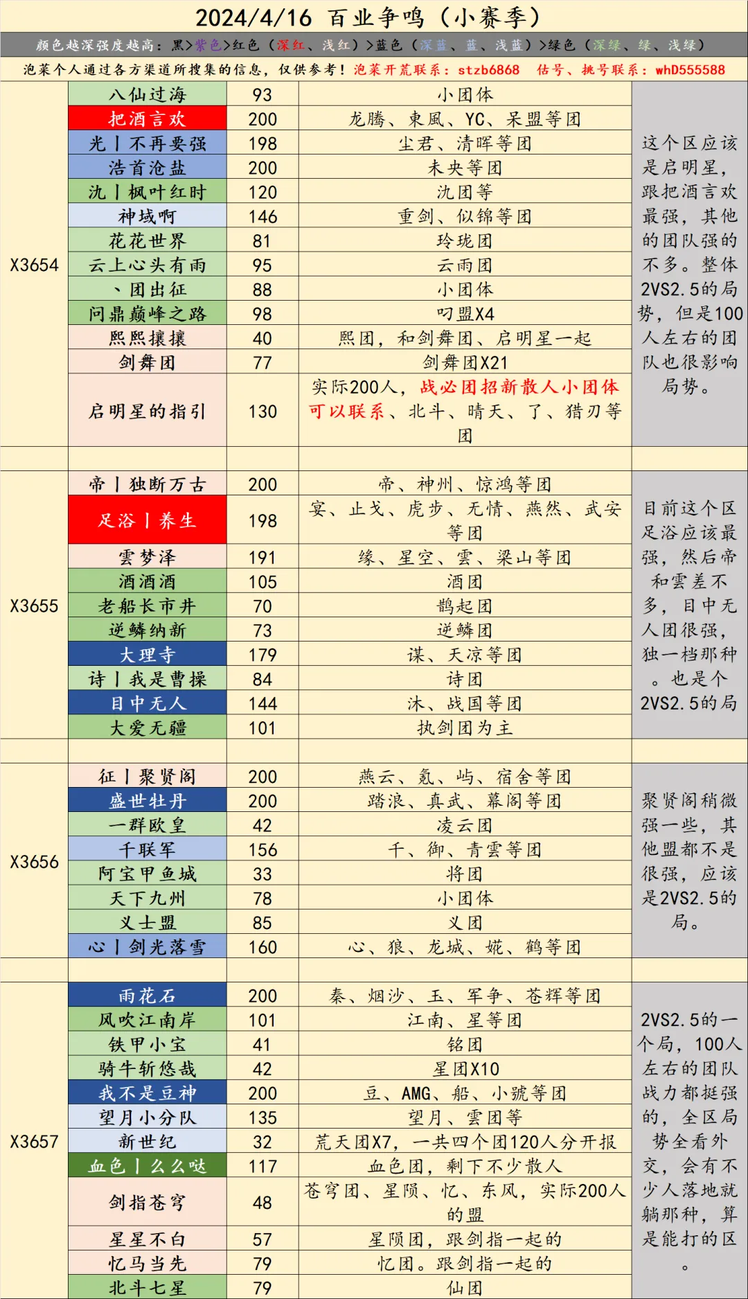 4月16日上午11点,X3654-X3657四个百业争鸣小赛季开启。