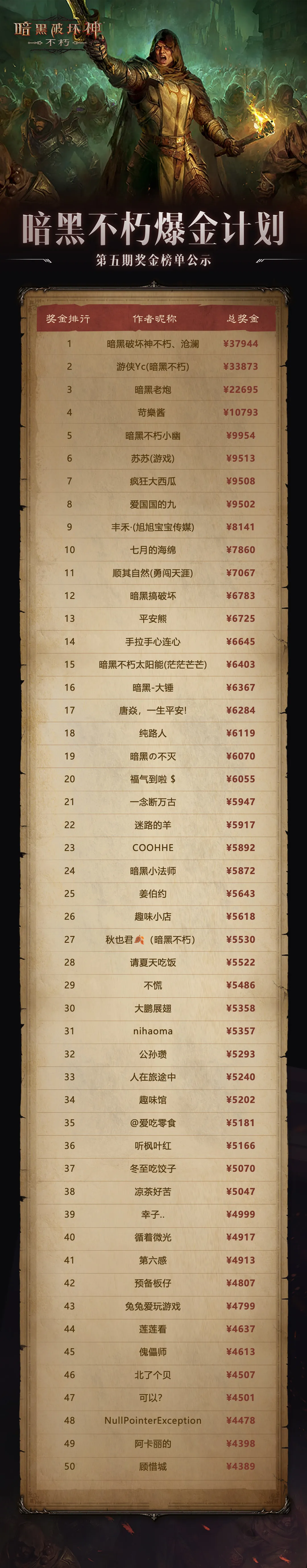 热爱创造价值,收获惊喜回报。相信看完了苛樂酱的采访,各位《暗黑破坏神:不朽》的创作者一定收获了不少启发。不如趁着暗黑不朽爆金计划第六期,创造出更多优质的作品,或许下一位月入过万的爆金明星就是你!