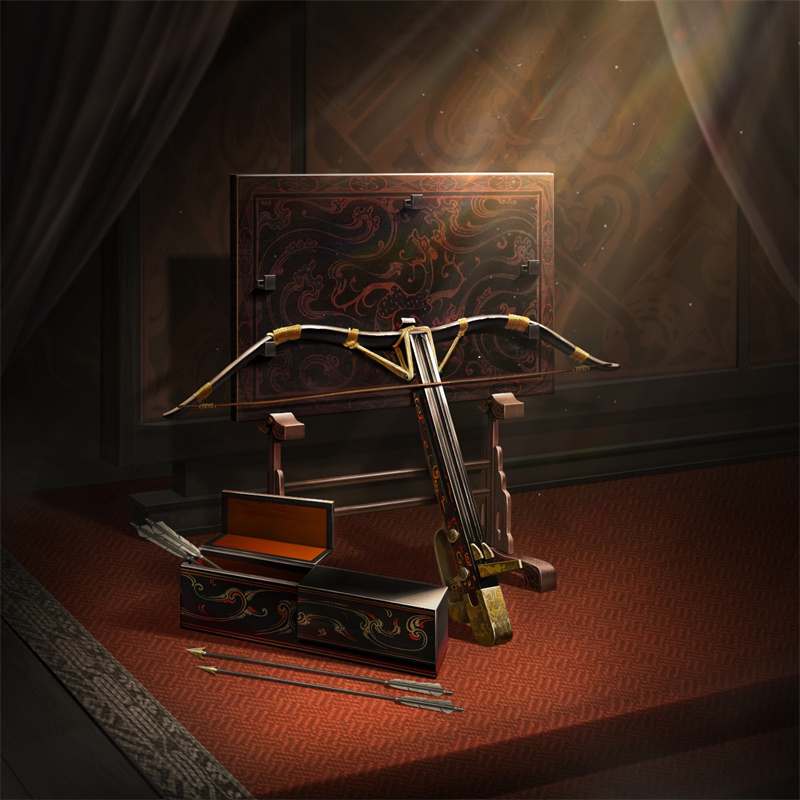 元戎:源自诸葛亮损益连弩,以铁为矢,矢长八寸,一弩十矢俱发,威力无穷。其进阶之路为短弩→连弩→元戎。