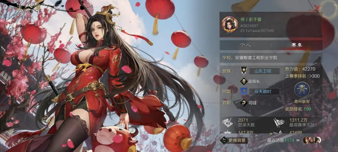 青州阵营唯一达成百万武勋的玩家,为一线作战的核心战力。