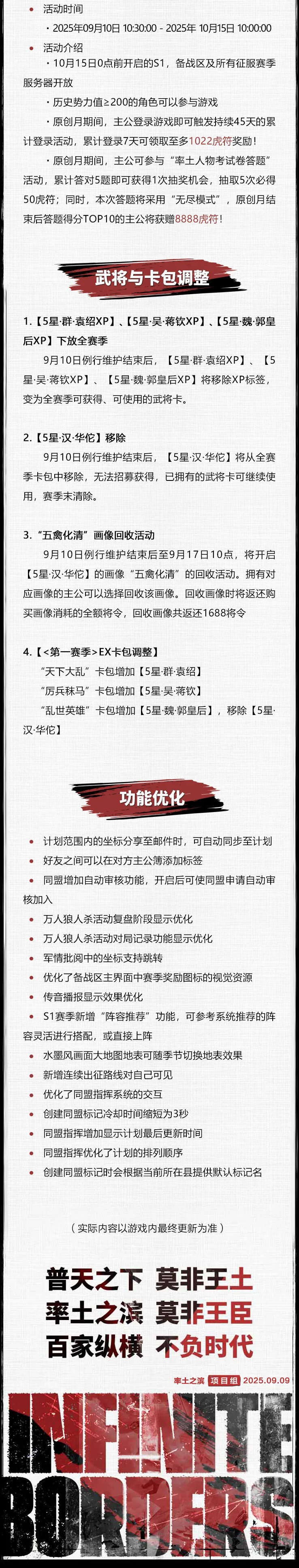 率土十载·青春服09月10日部分XP武将下放全赛季预告