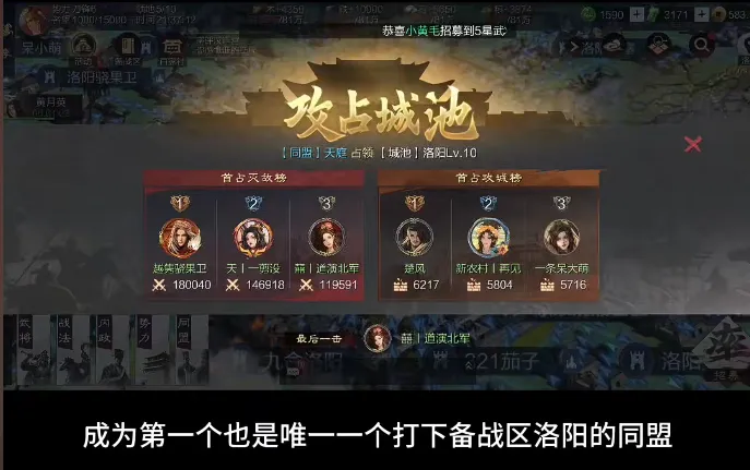 2019 - 2021 年间,【天庭】同盟化身不知疲倦的开拓者,以惊人的攻势攻城拔寨。到 2021 年,他们已打下 170 余座城池,后来更是将战绩刷新到 310 座。而在 2024 年 9 月 28 日,对于【天庭】来说,是一个具有历史意义的日子,他们成功拿下了洛阳,实现了备战区十三州的一统。