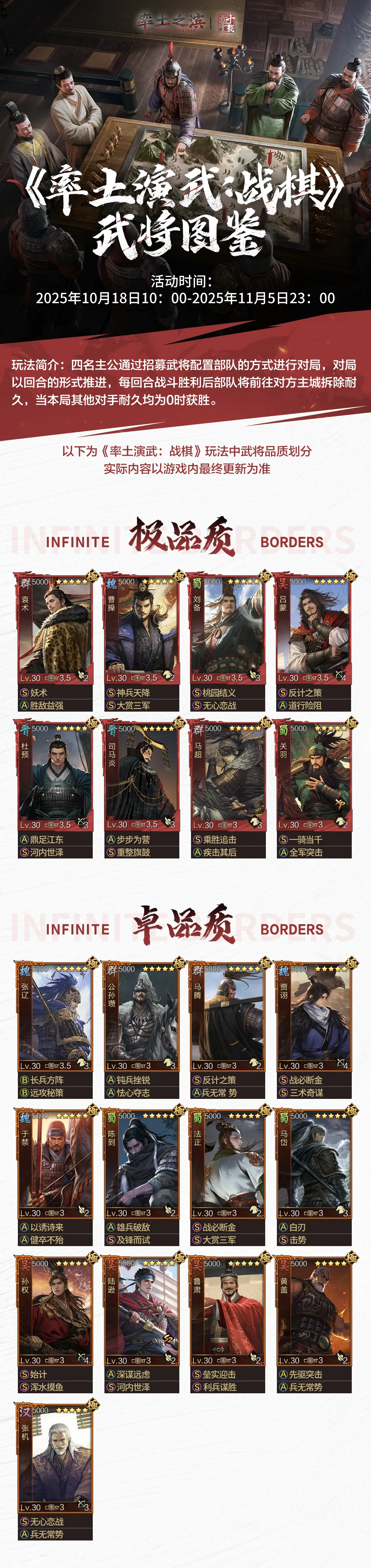 在率土战棋的 4 人竞技中,主城耐久一旦受损便无法恢复,“每回合保持自身队伍压制力” 则成为游戏的决胜关键。而棋子(武将)作为压制力的核心载体,其强度不仅体现在属性与战法,更在于能否适配兵种克制、高效拆耐久,以及随红度成长持续巩固优势。