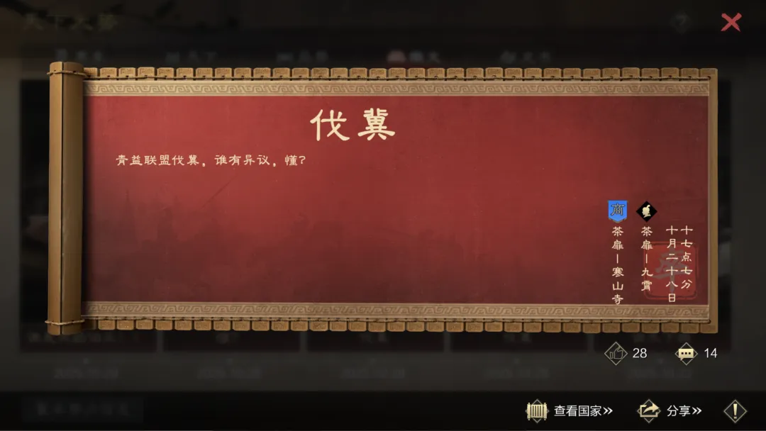 两盟争斗之下外交形势也在发生变化,28日晚【花醉丨枫林晚】与【茶扉丨寒山寺】同时发出檄文,欲结青益联盟伐冀;【缘义紫禁龙吟】不甘示弱,放下豪言剑指全区!
