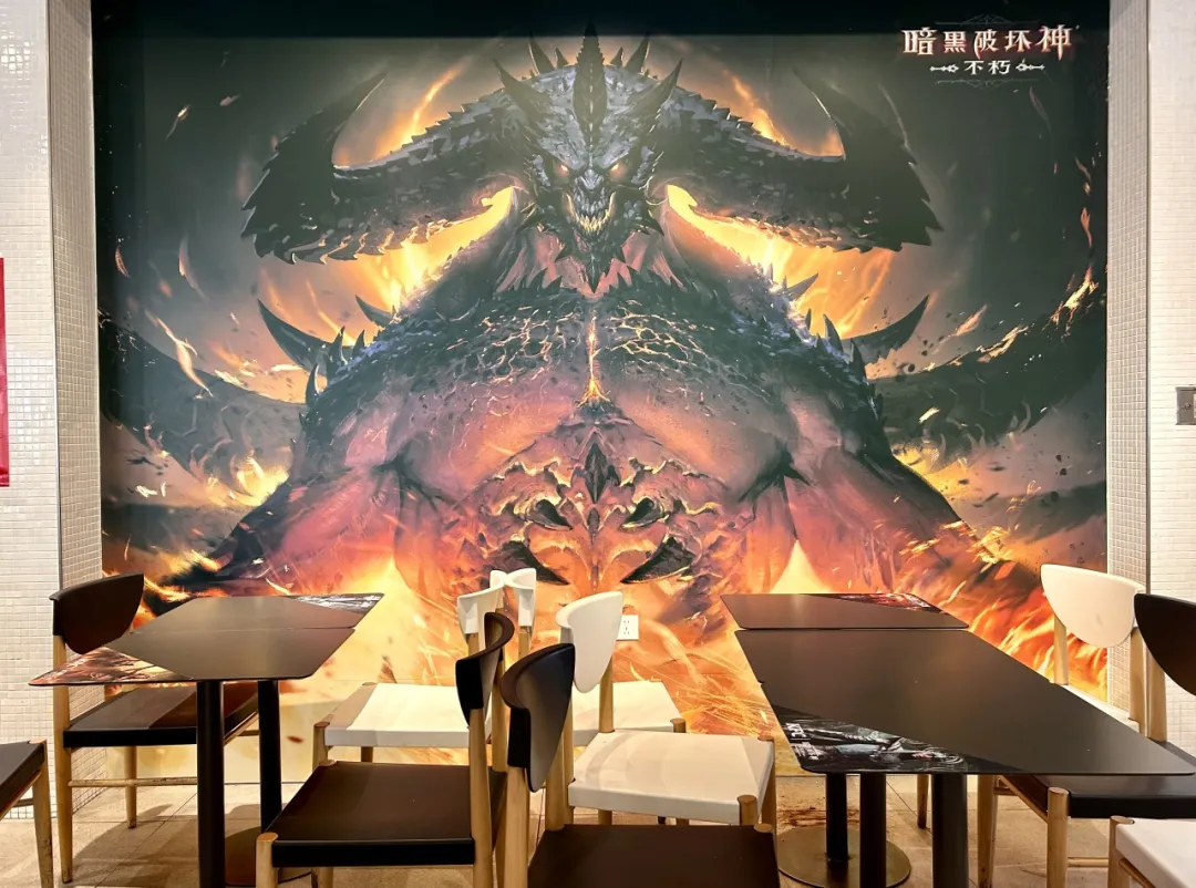 门店布置了多处打卡区,在《暗黑破坏神:不朽》角色的陪伴下享用美食吧!这口不朽滋味,大菠萝陪你一起品尝!