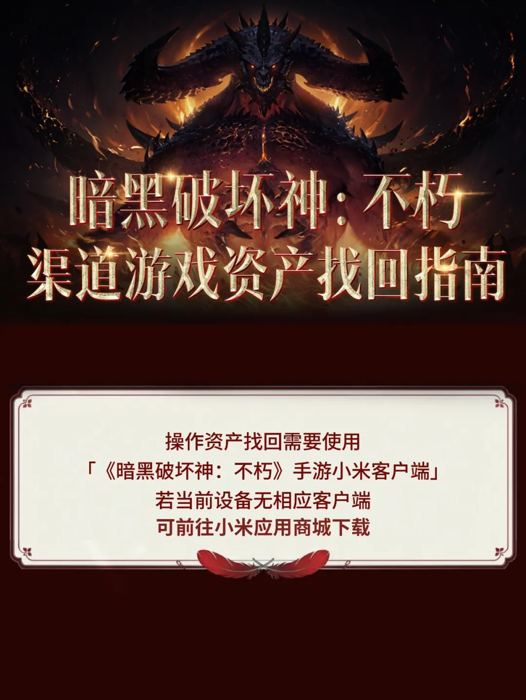 首先,衷心感谢大家长期以来对《暗黑破坏神:不朽》游戏小米渠道版本的支持与厚爱!
