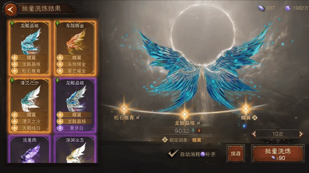 即日起至2026年3月3日 2:59前,完成翅膀洗炼引导任务、查看排行榜,并洗炼出特定材质、形状、评分的翅膀,即可获得永恒石、强化不朽钥石等丰厚奖品。