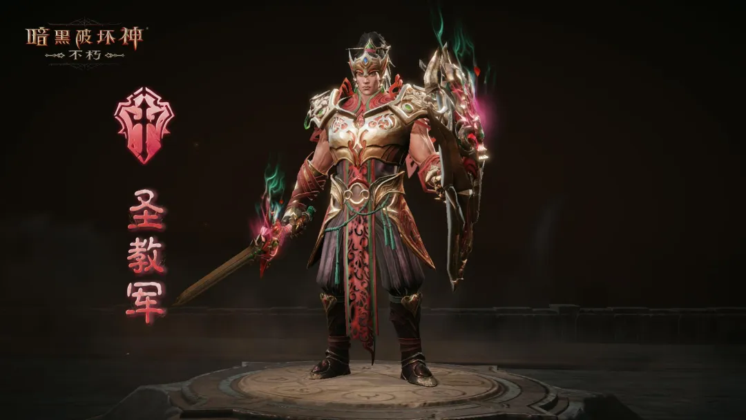圣教军立于巡游队伍前方,盾牌在灯火下泛起温暖光泽。他稳重的身姿成为节庆中的一道风景,象征着守护与团圆