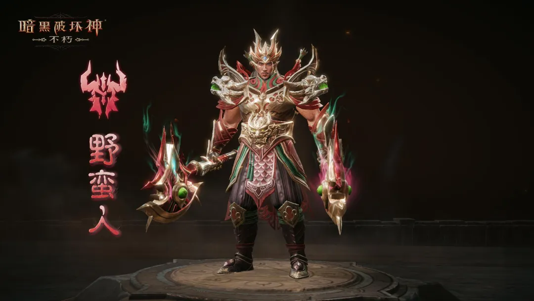野蛮人身披厚重护甲,肩甲上的纹饰在烟火下熠熠生辉。他豪迈地挥动武器,为庆典助兴,笑声与爆竹声一同回荡在夜色之中。