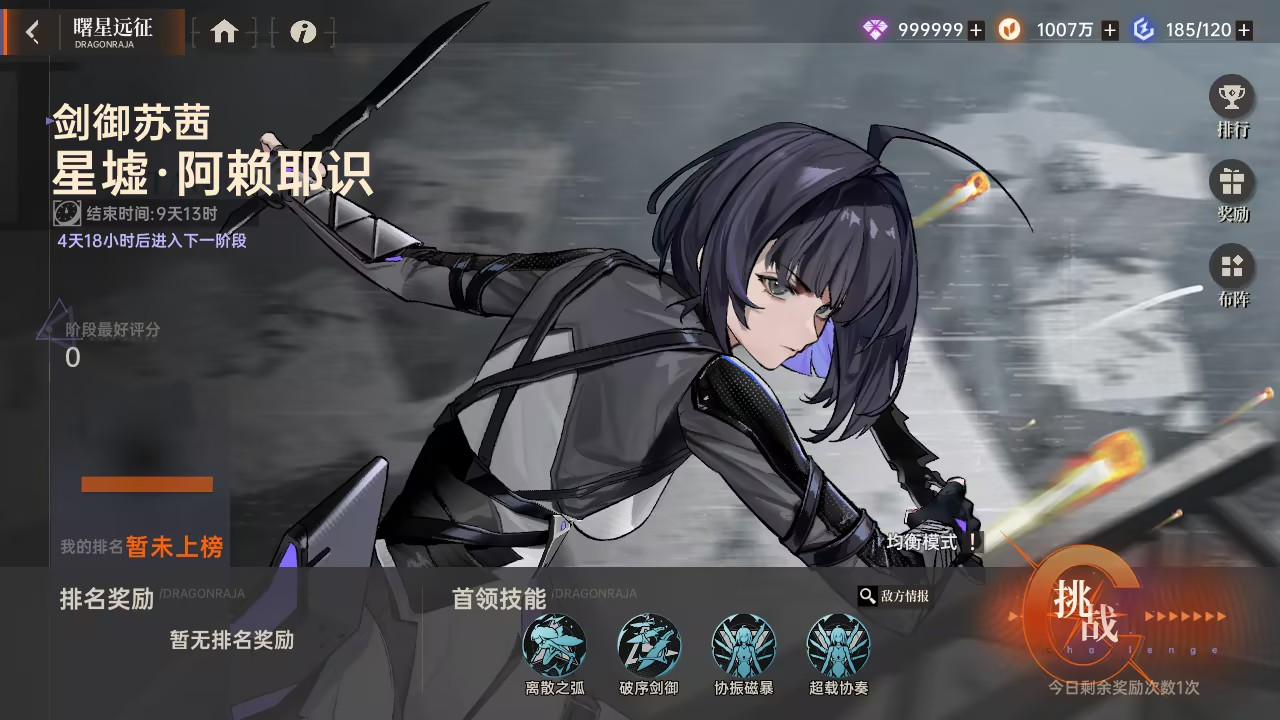 剑御苏茜是一位全新的攻击型伙伴。普攻后攻击敌方后排,造成物理伤害。自身任意行动前获得随机数量的【磁轨刃】,每把【磁轨刃】使持有者攻击提升 ,最多持有10把。